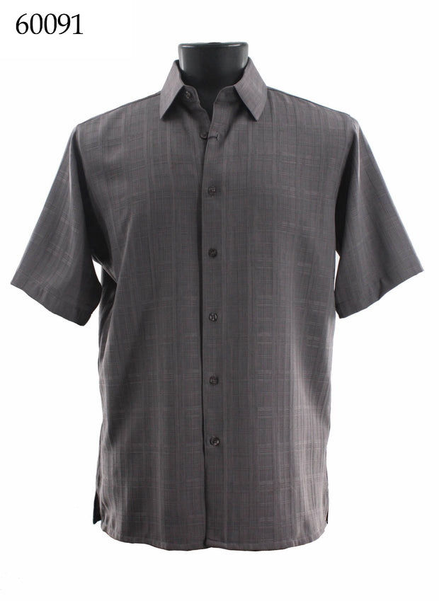 Bassiri Short Sleeve Button Down Casual Printed Men's Shirt - Square Pattern Grey #60091