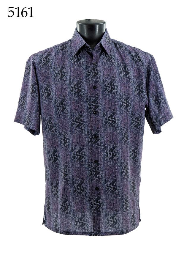 Bassiri Short Sleeve Button Down Casual Printed Men's Shirt -Diagonal Waves Pattern Lilac #5161