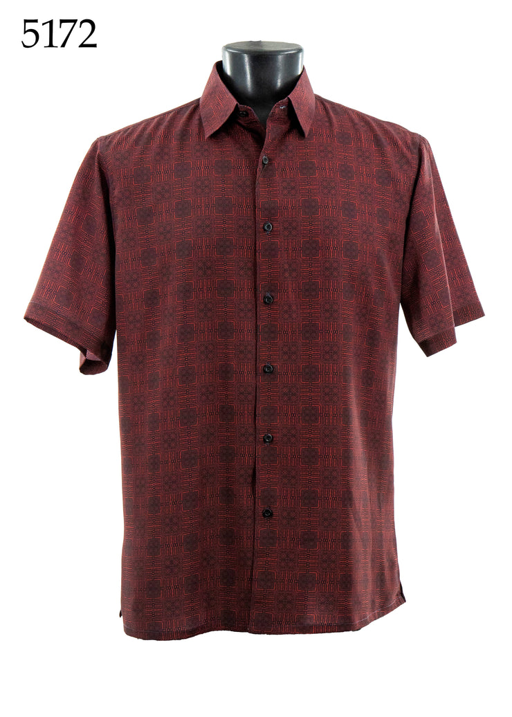 Bassiri Short Sleeve Button Down Casual Printed Men's Shirt -Squares Pattern #5172