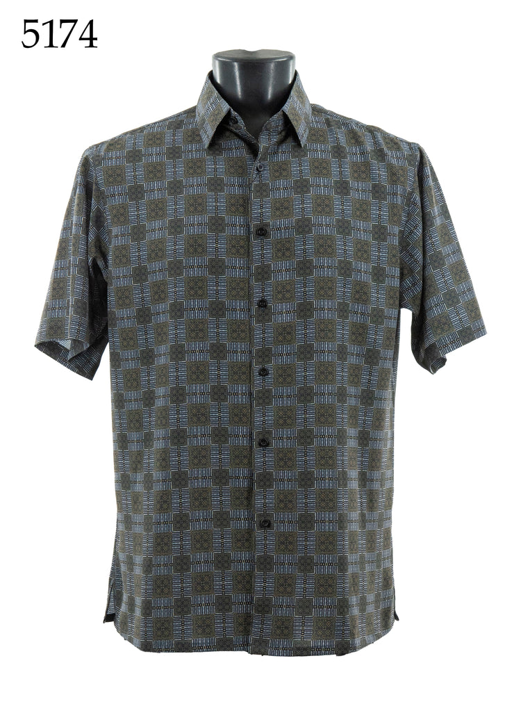 Bassiri Short Sleeve Button Down Casual Printed Men's Shirt -Squares Pattern #5174